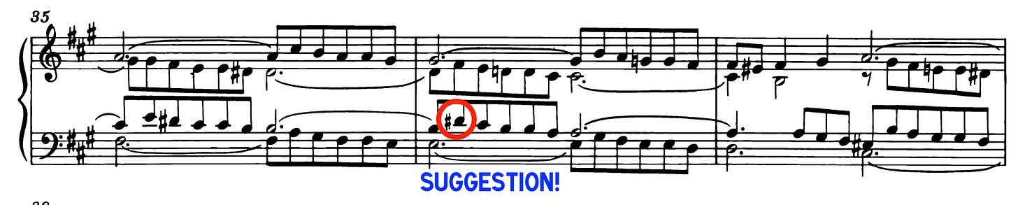 But in the revision, he forgets the cautionary accidental (or deems it unnecessary.) Does this omission justify D#?! I don’t think so. Both Henle and Bärenreiter suggest D#: