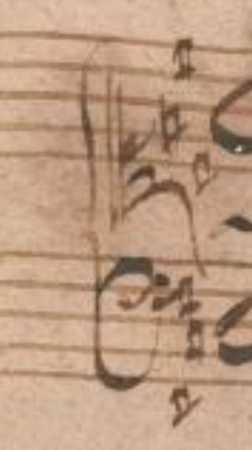 Is it more likely that Bach saw b minor as the image of Golgotha on the page? Dare we speculate further and claim that the symmetry of the C# between the two F’s is Christus between the two thieves? Speculation adds nothing of substance… but it’s fun! Bach’s b minor on the page: