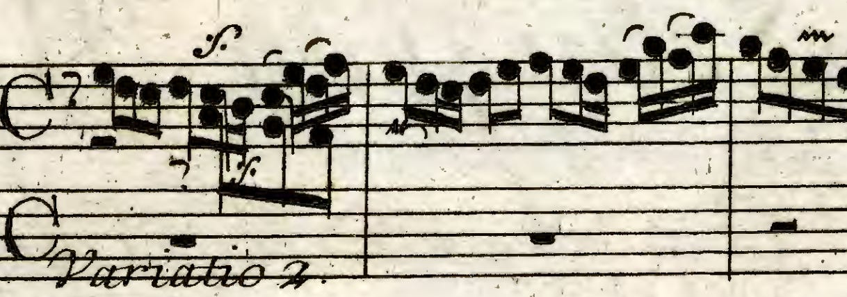 Variatio 2 omits the follower after only three notes, while the last image shows the second voice dropping out after two full bars.